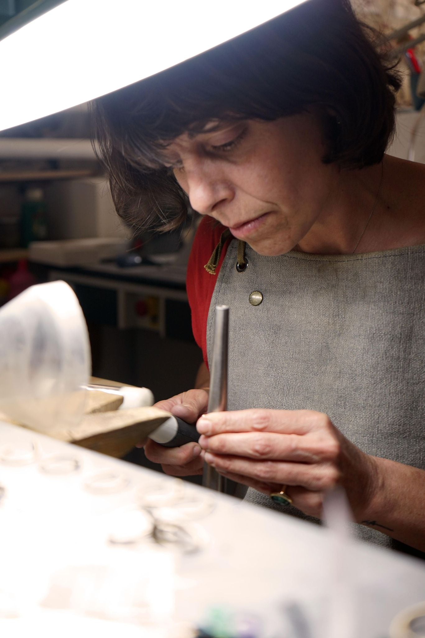 Nel 2011 ho dato vita al mio marchio Fumé Gioielli, folgorata dalla bellezza un po’ d’antan di alcuni caratteri tipografici acquistati al Marché Aux Puces di Parigi, che sono diventati il punto di partenza per la stilizzazione del logo. Subito dopo questa decisione ho frequentato la Scuola Orafa Ambrosiana, iniziando a concentrarmi sulla lavorazione delle pietre, creando pezzi unici fatti a mano attraverso l’antica e nobile tecnica della cera persa.